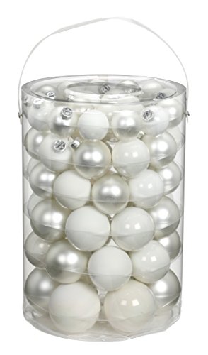 Inge-glas 15112E460-MO Glaskugel Sortiment 60 Stück Vorteilsdose, 18x4cm / 20x5cm / 16x6cm / 6x7cm Just White-Mix, (Weiß…