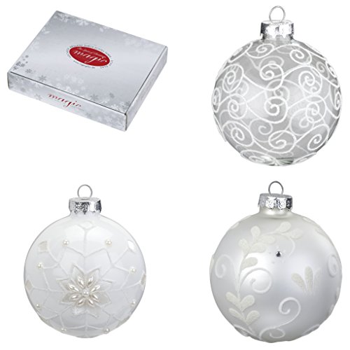 Inge-glas 4639H612-MO dekorierte Glaskugeln, 60 mm, 12 Stück/Box, Weiß, 3 verschiedene Dekore