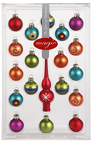 Inge-glas 66075K620MO Glas-Minisortiment Mille Fiori, 19 Kugeln 3 cm, 1 Spitze 12,5 cm, Mehrfarbig, 3cm